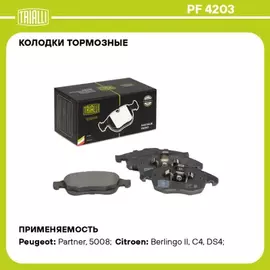 Колодки торм. для а/м Peugeot Partner II (08-)/Citroen Berlingo II (08-) диск. перед. TRIALLI PF 4203